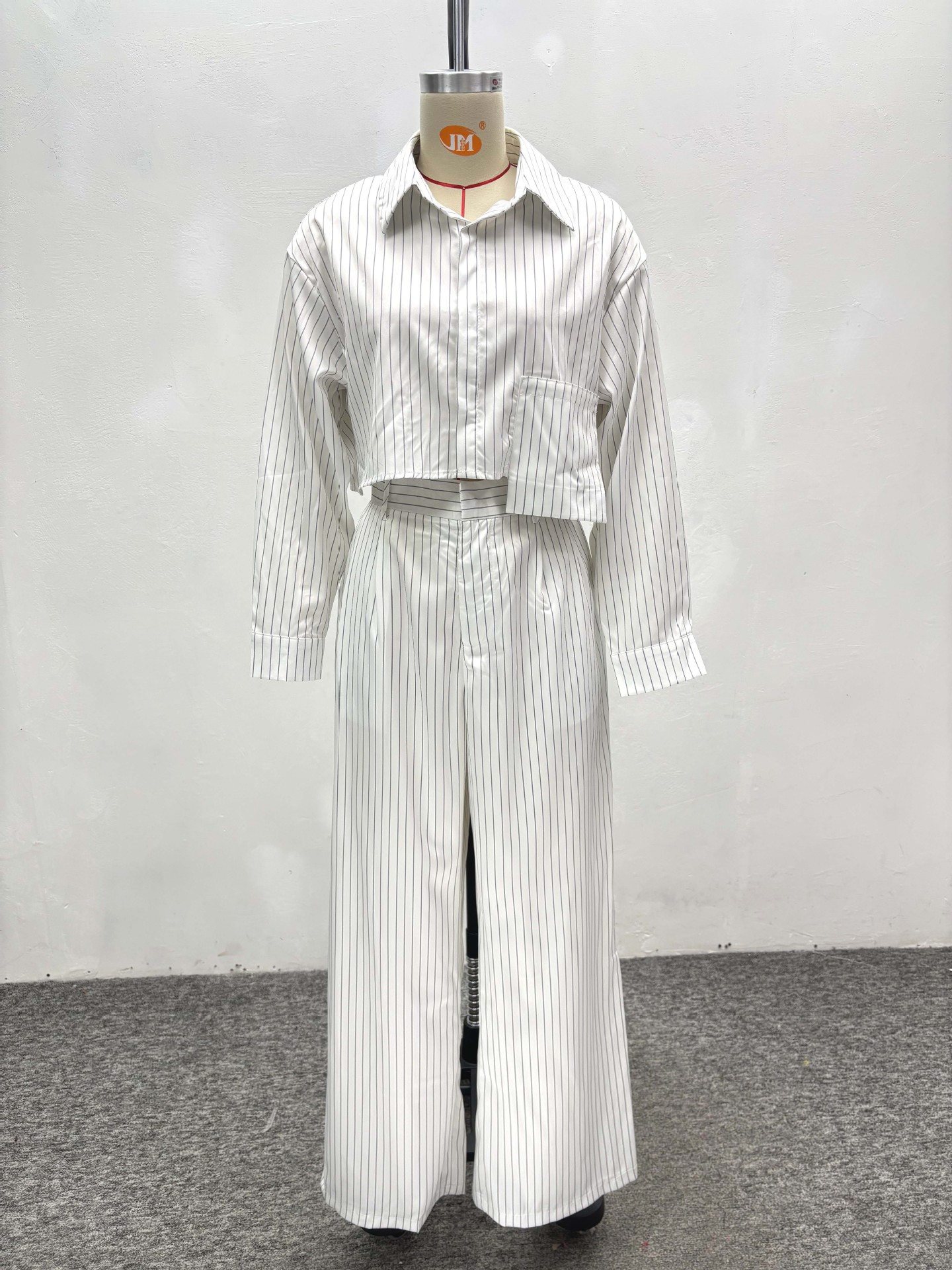Ensemble grande taille – Chemise à rayures col tailleur et pantalon coordonné