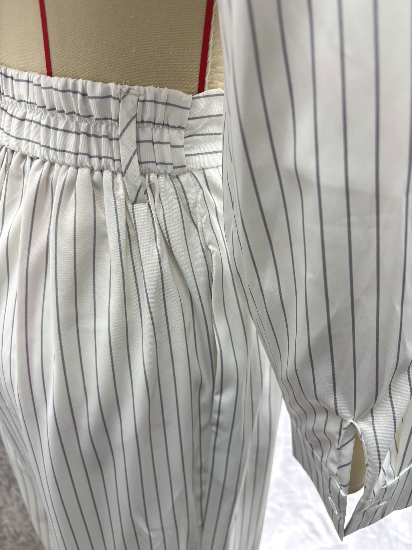 Pantalon assorti : taille élastique ou ajustée, coupe droite fluide pour confort et élégance.